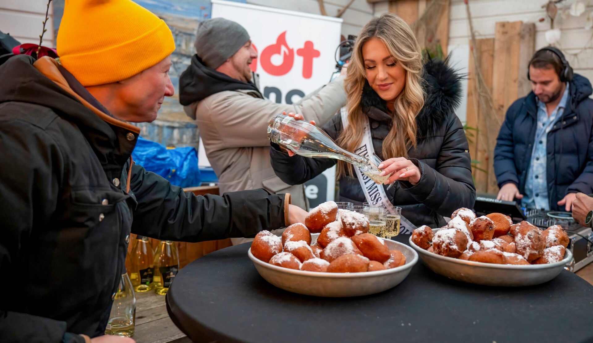 De bubbels, uitgeschonken door kandidaat Miss Zuid-Holland èn van oorsprong een echte Egmondse Ella Koeznetsovaa, vloeiden rijkelijk en de oliebollen smaakten heerlijk! Ondanks de storm buiten was het in de tent één en al warmte, gezelligheid en verbondenheid – precies zoals een Nieuwjaarsfeest hoort te zijn. π₯π©π₯